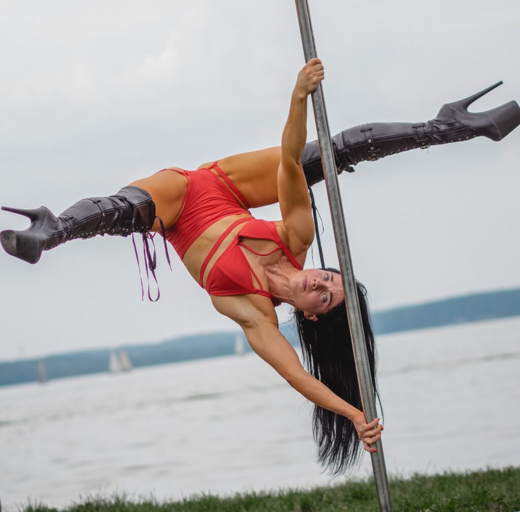Pole dance — это синтез танца и акробатики на вертикальном пилоне. Это направление требует: